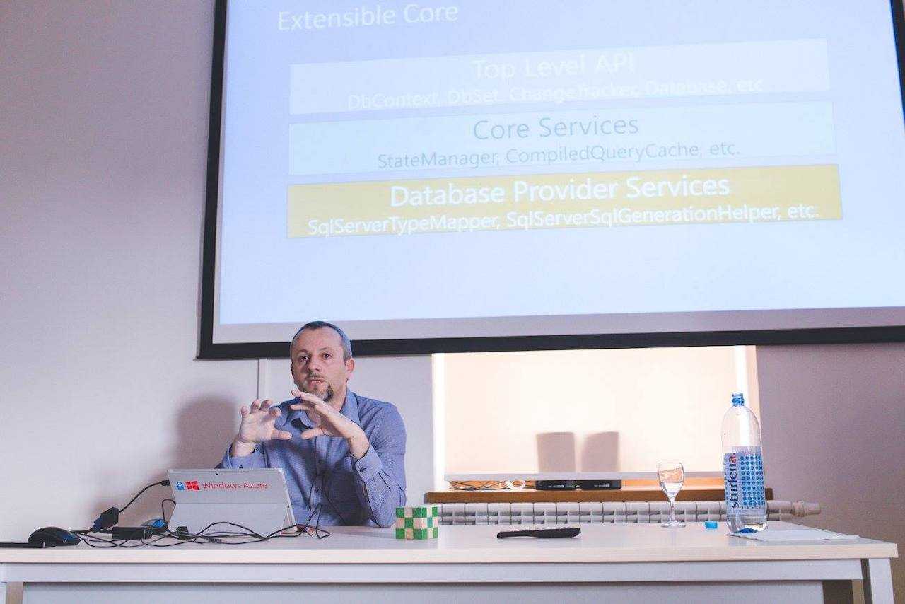 Entity Framework 7, (Entity Framework Core 1.0) predstavlja iz početka pisanu novu tehnologiju pristupa podacima neovisnu od platforme, operativnog sistema i uređaja na kojem se vrti. Samim tim EF7 je koristan Mobile, Web ili Desktop developerima, bilo da razvijaju jednostavne ili robusne sisteme, neovisno o platformi i operativnom sistemu. Microsoft ovu tehnologiju preporučuje za nove .NET, Web i Windows 10 aplikacije. Iako je baziran na sličnom dev konceptu EF6.x, ipak se ne preporučuje migracija sa prethodnih verzija. Ovo predavanje će dati pregled ovog vrlo korisnog i interesantog alata za developere. Predavanje će kroz praktične primjere pokazati da Entitiy Framework 7 (Core 1) zaista predstavlja alat za upravljanje podacima, kako za relacijske baze podataka tako i za nerelacijske podatke. Vrti se na Windows, Linux i Mac operativnim sistemima unutar .NET Core, a do sada podržava MS SQL Server, SQLite, MS SQL Compact, PostgreSQL, IBM Data Servers te InMemory providere.